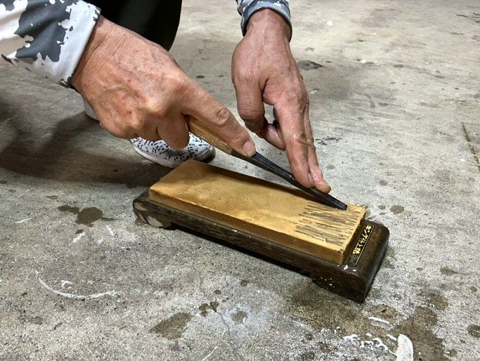 わたし達スタッフは、日々お客様のお宅で色々な工事をさせていただきますが、合間時間には大工道具の手入れをしております。今日は切れ味の悪くなってしまったノミを研ぎました。