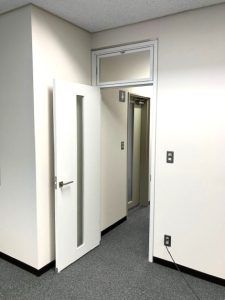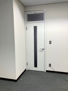 テナントビルにある開設準備中のオフィスで間仕切りドア設置工事を行いました。