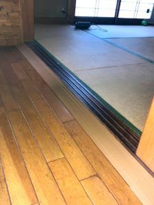 利用者様が1階和室を寝室として生活されているため、床の高さを変えるのではなく、敷居との段差にスロープを付けることにしました。