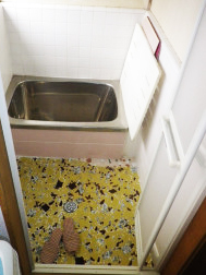 トイレの手洗いカウンターに渋い和柄の壁紙が貼られていたりと