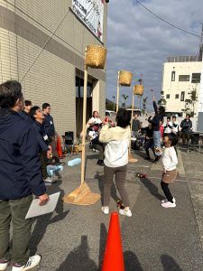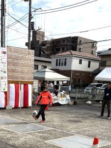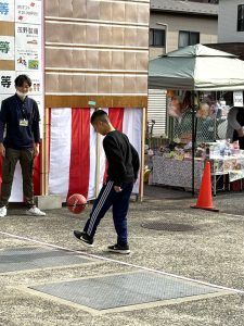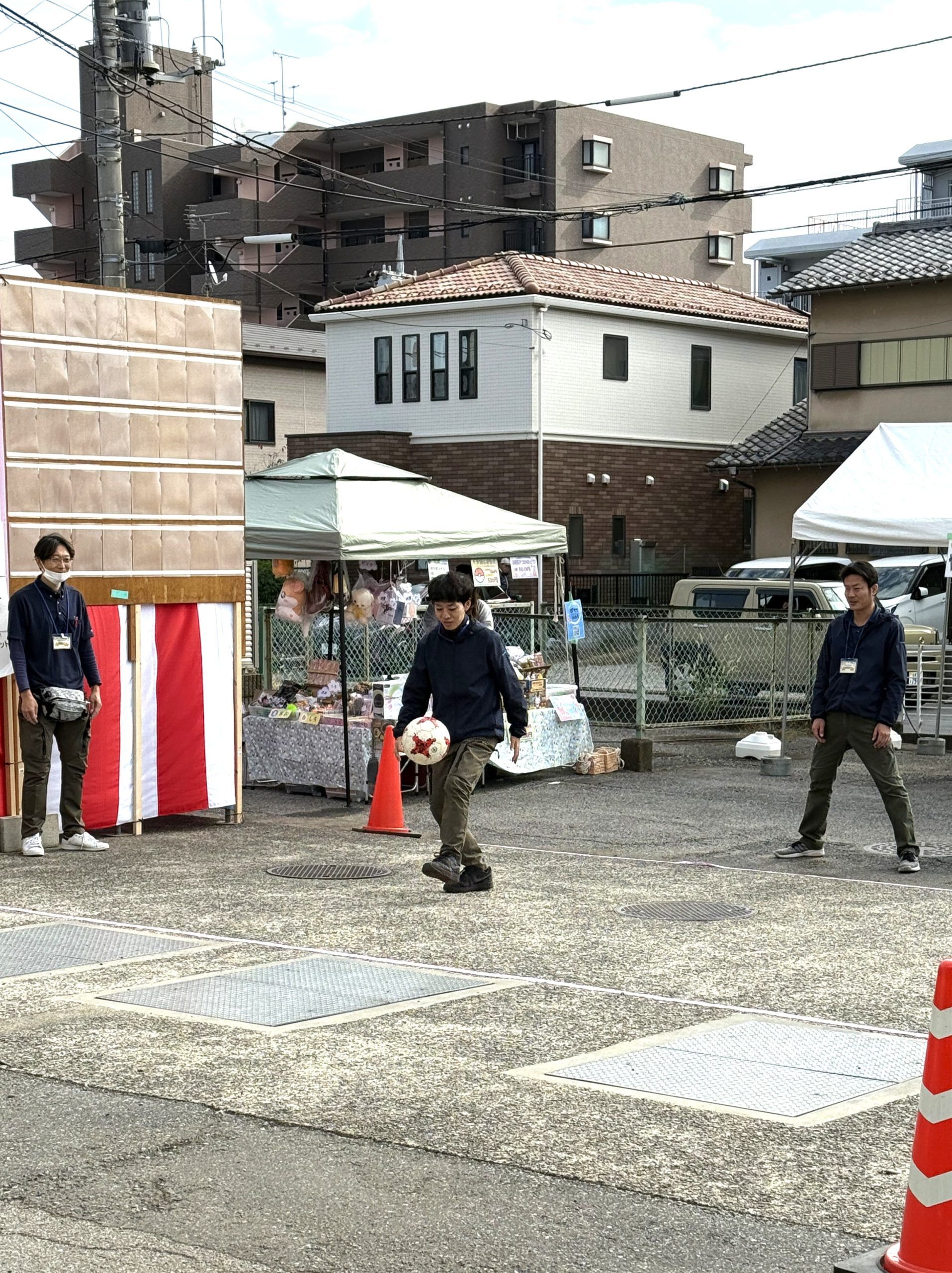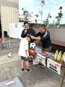 スタッフが出したリフティング記録を超え、最も回数が多い人が優勝です。